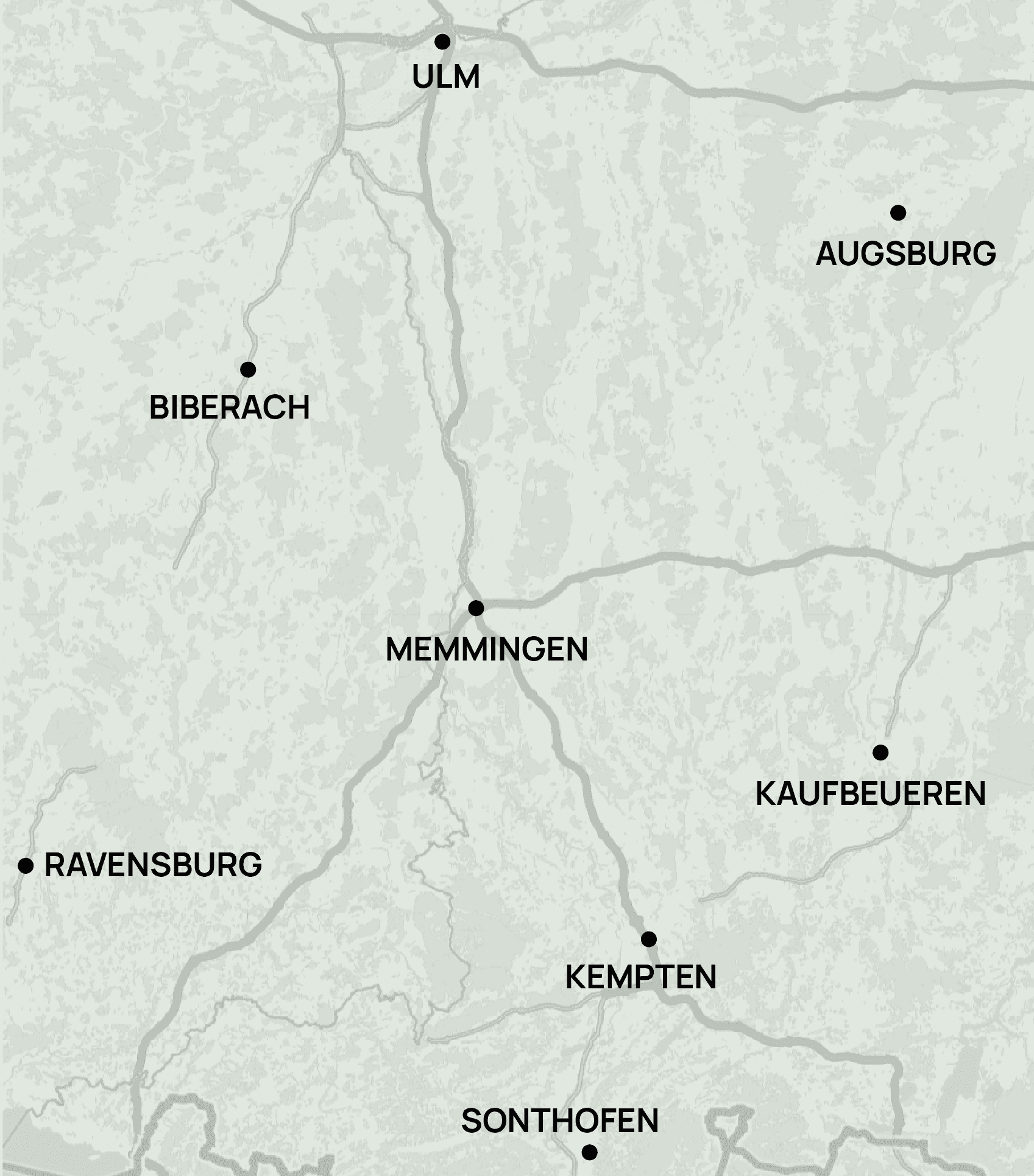 In Ulm, BIberach, Memmingen und im gesamten Allgäu sowie den Metropolregionen Augsburg und München.